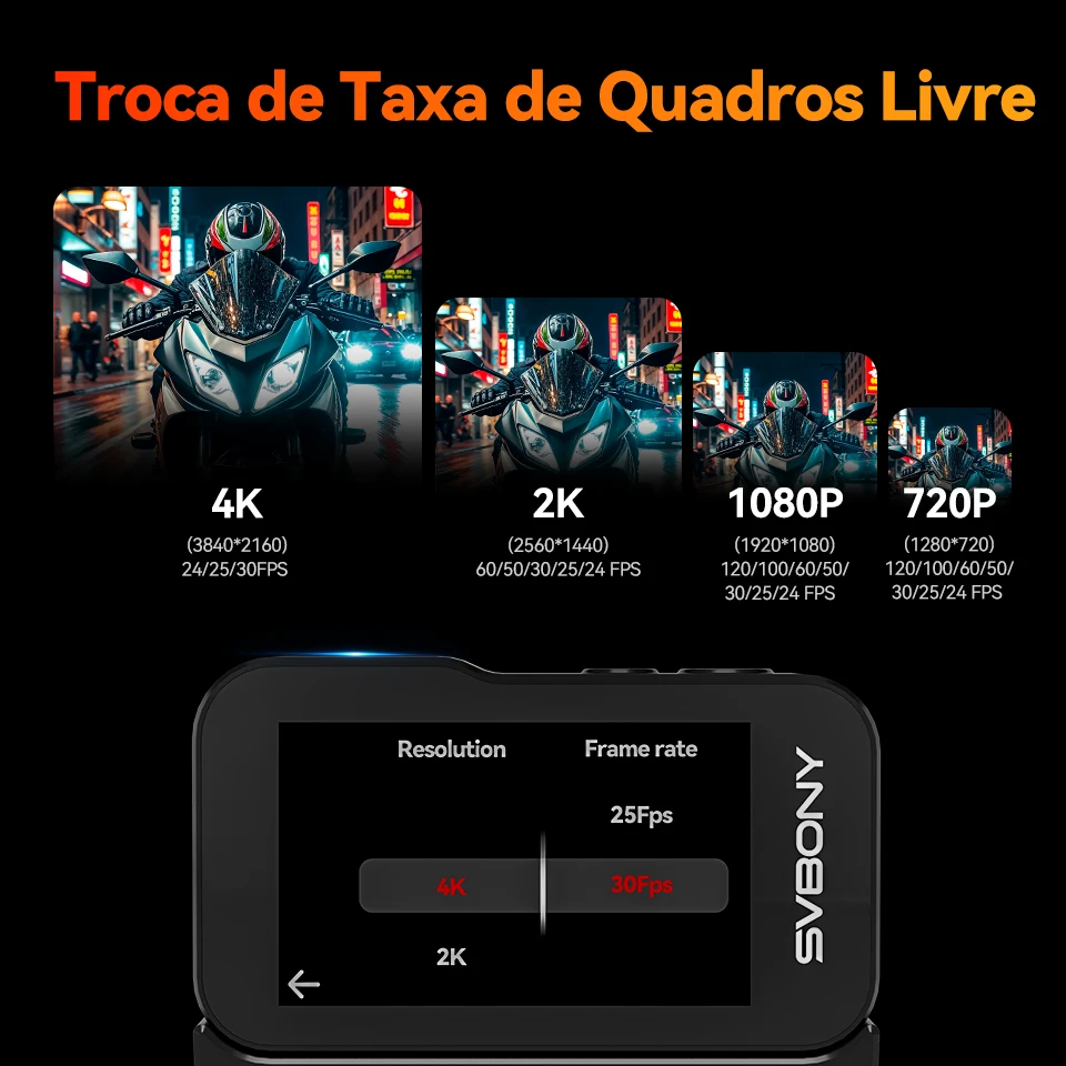 - Resolução de vídeo: 4K 2K 1080P 720P